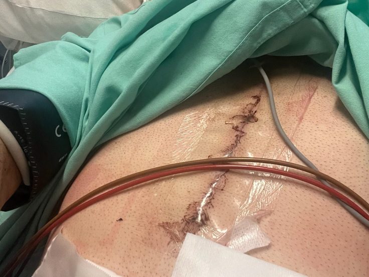 Son moral est bon et il fait des blagues, il lui fait prendre des marches pour le renforcer, ce qu’il devra continuer à la maison. ATTENTION AUX ÂMES SENSIBLES Comme vous pouvez le voir, il a une cicatrice assez importante. (Selfie prise par lui)